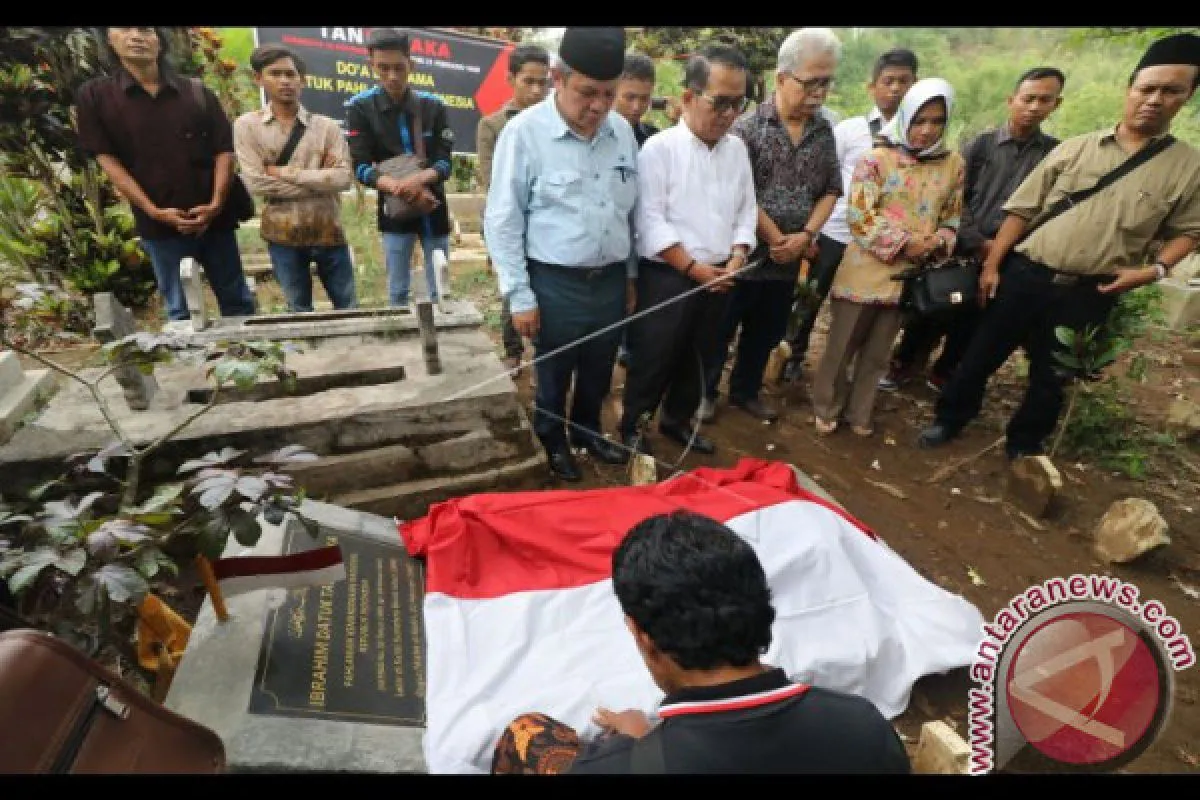 1Peziarah memanjatkan doa di makam pahlawan nasional Tan Malaka di lereng gunung Wilis, Desa Selopanggung, Kediri, Jawa Timur, Kamis (9/11). Doa bersama oleh sejumlah elemen masyarakat tersebut dalam rangka memperingati Hari Pahlawan. Antara Foto/Prasetia Fauzani/nym/2017.