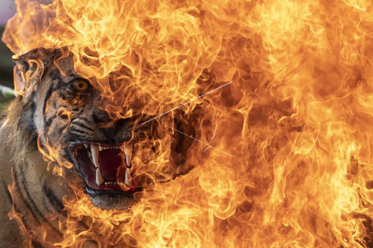 Barang bukti berupa koleksi jenis awetan (offset) Harimau sumatera (Panthera tigris sumatrae) dimusnahkan dengan cara dibakar di Palembang, Sumatera Selatan, Jumat (18/3/2022). Balai Konservasi Sumber Daya Alam (BKSDA) Sumatera Selatan memusnahkan 18 barang bukti offset satwa dilindungi hasil operasi 2018-2021 yang telah mendapat putusan dari pengadilan. ANTARA FOTO/Nova Wahyudi/nym.