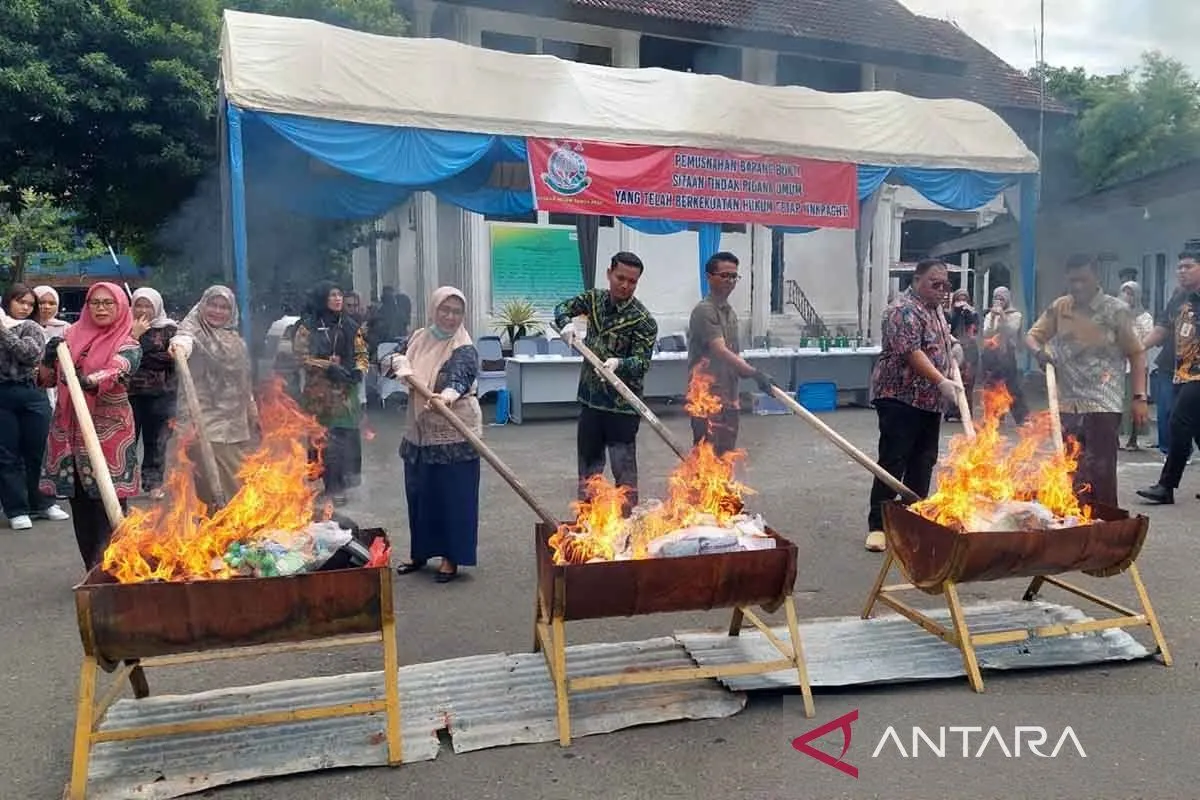 "Barang-barang yang dimusnahkan tersebut merupakan barang bukti dan barang sitaan serta rampasan negara yang perkaranya sudah memiliki kekuatan hukum tetap atau inkrah berdasarkan putusan pengadilan maupun mahkamah syariah," katanya.