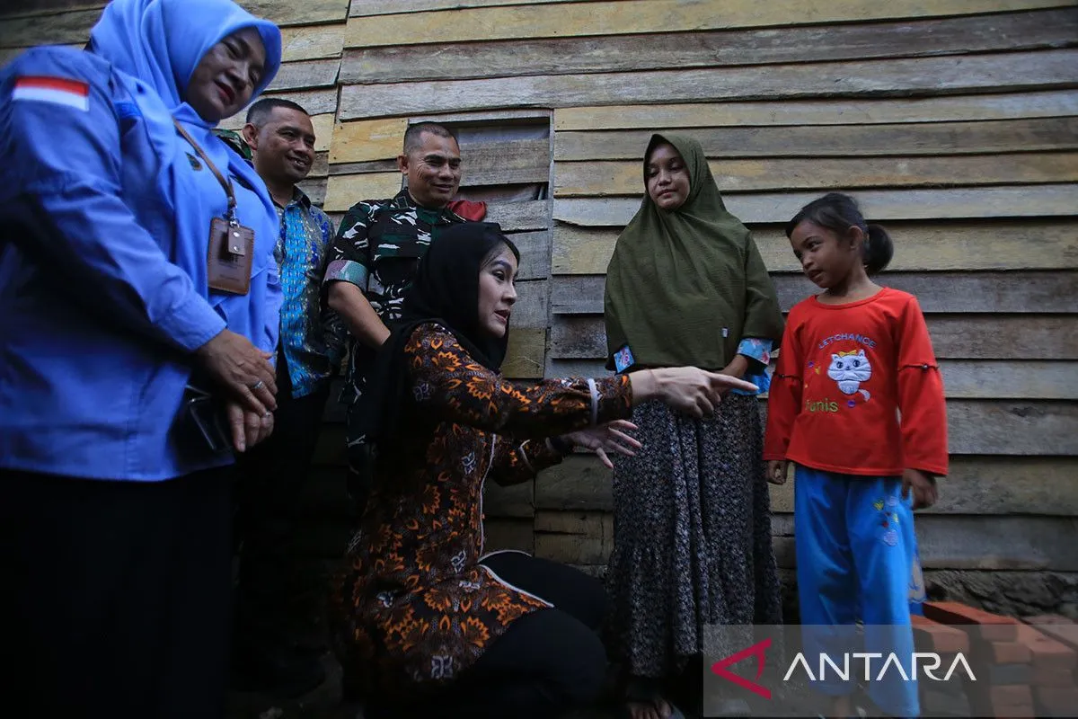 Wakil Menteri Kependudukan dan Pembangunan Keluarga/Wakil Kepala BKKBN, Ratu Ayu Isyana Bagoes Oka (keempat kiri) berbincang dengan seorang anak dari keluarga prasejahtera saat kunjungan ke daerah pedalaman Desa Siron Blang, kabupaten Aceh Besar, Aceh, Selasa (7/10/2025). Kunjungan Ratu Ayu Isyana Bagoes Oka ke kampung potensi stunting di daerah itu untuk mensosialisasikan program Gerakan Orang Tua Asuh Cegah Stunting (Genting) melaui edukasi kepada masyarakat dan menggalang kolaborasi dengan semua pihak dalam pemenuhan nutrisi ibu hamil, program makan bergizi gratis serta menjaga kesehatan lingkungan. ANTARA FOTO/Ampelsa.