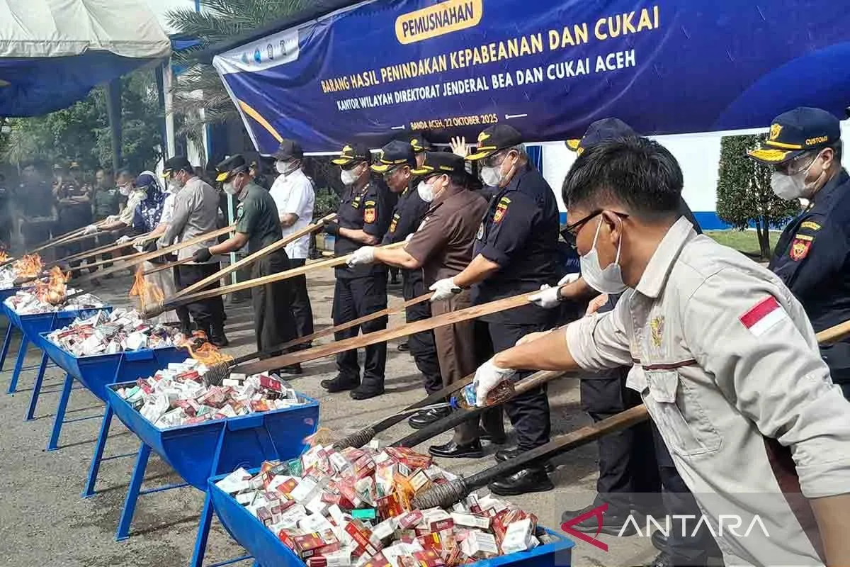 Kepala Kantor Wilayah Direktorat Jenderal Bea Cukai Aceh Bier Budy Kismulyanto mengatakan jutaan batang rokok yang dimusnahkan tersebut merupakan hasil dari 576 penindakan periode November 2024 hingga September 2025.