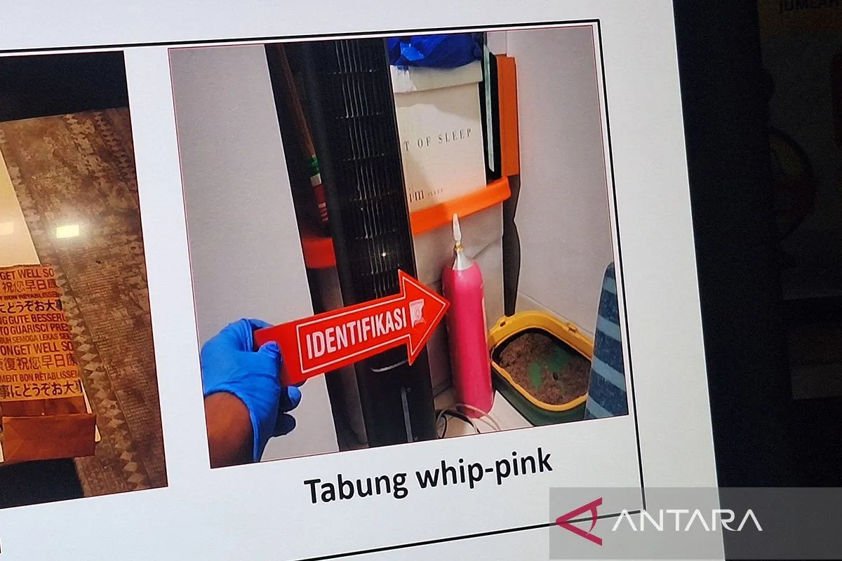 Sementara itu, tabung whip pink ditemukan di kamar asisten almarhum saat olah tempat kejadian perkara (TKP).