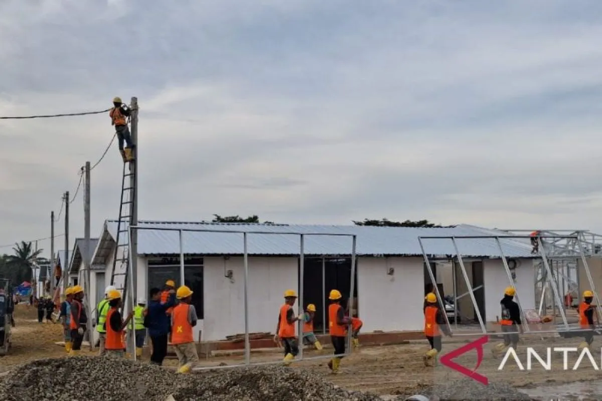 Aceh Tamiang (ANTARA) - Tujuh perusahaan Badan Usaha Milik Negara (BUMN Karya) mengerahkan 1.000 pekerja untuk mempercepat proyek pembangunan 600 unit hunian sementara (Huntara) korban bencana banjir di Desa Simpang Empat Upah, Kecamatan Karang Baru, Kabupaten Aceh Tamiang.