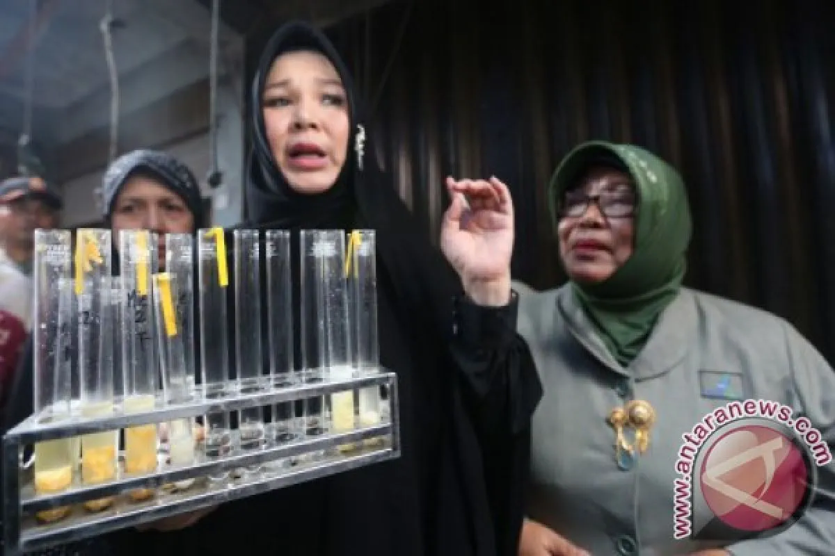 Walikota Banda Aceh Illiza Sa'aduddin Djamal (tengah) memperlihatkan hasil uji kualitas makanan yang dilakukan petugas Balai Pengawasan Obat dan Makanan (BPOM) Aceh di Banda Aceh, Aceh, Rabu (29/6). BPOM Aceh tidak menemukan adanya zat pengawet atau zat kimia berbahaya lainnya di tempat produksi, dan memastikan makanan serta minuman yang dipasarkan layak untuk dikonsumsi. ANTARA FOTO/Irwansyah Putra/ama/16.