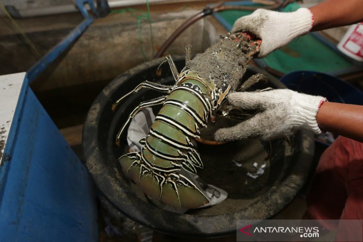 Pekerja mempersiapkan lobster kualitas ekspor untuk dikirim ke Jakarta di salah satu tempat penampungan di Banda Aceh, Aceh, Selasa (21/1/2020). Menurut eksportir permintaan komoditas lobster untuk diekspor keberbagai negara melalui Jakarta masih sangat sangat tinggi dengan harga jual Rp270.000 hingga Rp1.400.000 perkilogram tergantung jenis dan ukuran. Antara Aceh/Irwansyah Putra.