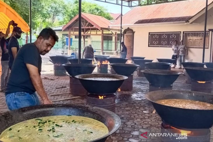 Warga Gampong Ateuk Munjeng Kecamatan Baiturrahman Kota Banda Aceh memasak Kuah Beulangong di Meunasah gampong tersebut, Sabtu (16/5). Kuah Beulangong dipersiapkan untuk sajian buka puasa bersama dalam rangka kenduri Nuzul Quran atau kenduri "Tammat Daruh" yang kerap dilaksanakan setiap puasa Ramadhan. Antara Aceh/Azhari.