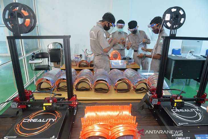 Siswa Sekolah Menengah Kejuruan -Sekolah Menengah Teknologi Industri (SMK-SMTI) Aceh memproduksi alat pelindung wajah, Fice Shield di Banda Aceh, Aceh, Jumat (12/6/2020). Hasil produksi Ficeh Shield dan hand sanitizer siswa SMK-SMTI di Aceh itu akan disumbangkan untuk kebutuhan tenaga medis di sejumlah Puskesmas dalam penanganan pandemi COVID-19. Antara Aceh/Ampelsa