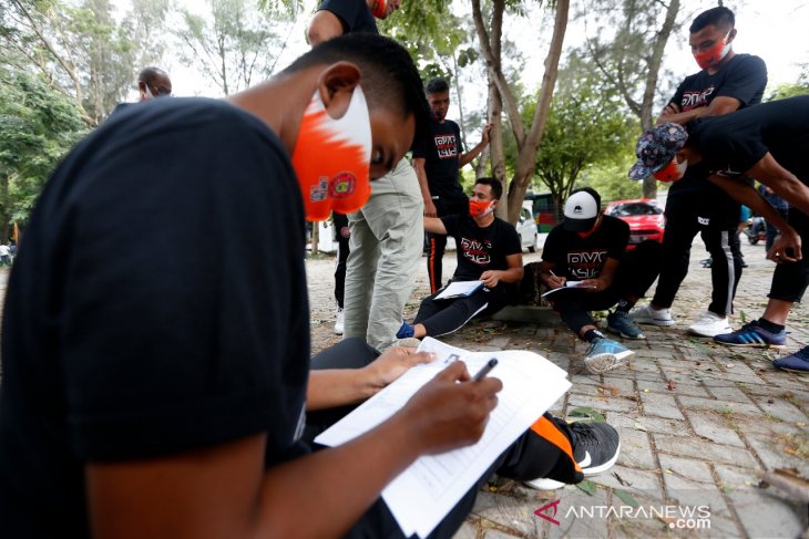 Pesepak Persiraja Banda Aceh menyerahkan formulir untuk mengikutii tes usap (swab test) COVID-19 di laboratorium Fakultas Kedokteran Unsyiah, Banda Aceh, Aceh, Senin (21/9/2020). Pemain dan ofisial Persiraja Banda Aceh menjalani tes usap sebagai persiapan mengikuti pertandingan lanjutan Liga 1 2020. Antara Aceh/Irwansyah Putra.