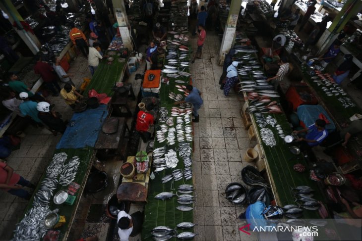 Aktivitas pasar ikan tradisional Peunayong ditengah pandemi COVID-19, di Banda Aceh, Aceh, Sabtu (3/10 2020). Badan Kebijakan Fiskal (BKF) menyebutkan pandemi COVID-19 telah mengakibatkan Indonesia telah memasuki fase resesi sejak awal kuartal pertama sampai kuartal ketiga 2020 sehingga perekonomian nasional mengalami penurunan yang signifikan. Antara Aceh/Irwansyah Putra.