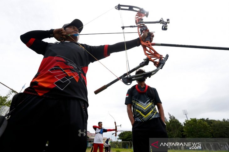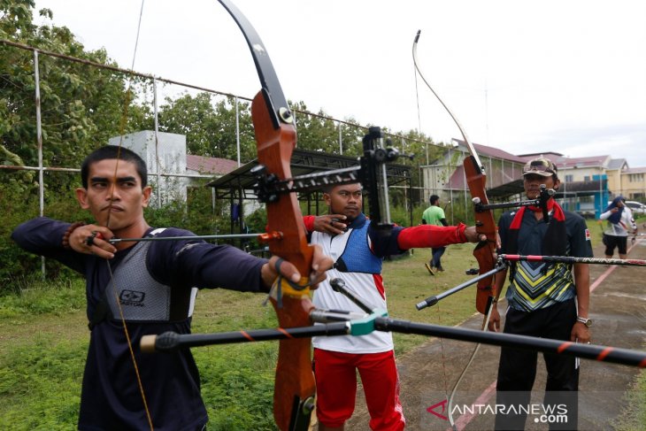 Atlet cabang olahraga (cabor) panahan mengikuti latihan rutin di area stadion Harapan Bangsa, Banda Aceh, Aceh, Selasa (13/10/2020). Pengurus Provinsi Persatuan Panahan Indonesia (Pengprov Perpani) Aceh mempersiapkan delapan atlet putra dan putri untuk persiapan menghadapi Pekan Olahraga Nasional (PON) di Papua yang dijadwalkan pada Oktober 2021. Antara Aceh/Irwansyah Putra.