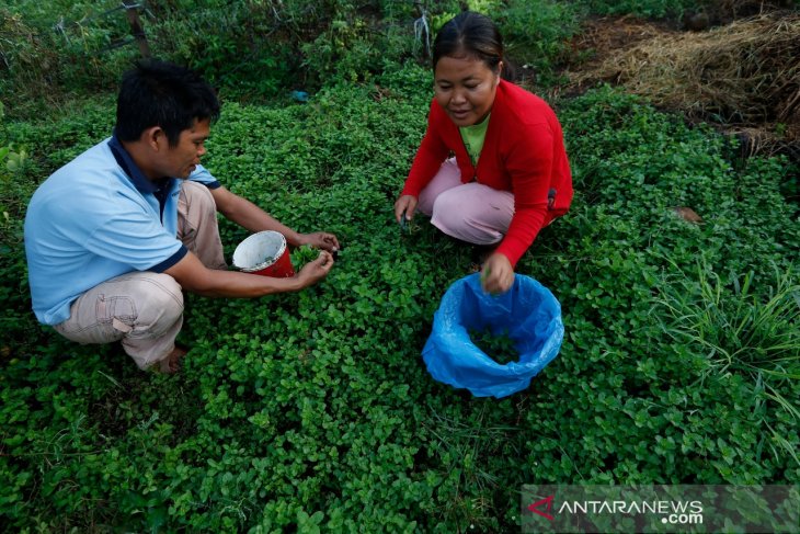 Petani memanen daun mint di kebun budidaya sayur organik, Desa Neuheun, Aceh Besar, Aceh, Sabtu (19/12/2020). Menurut petani hasil panen berbagai jenis sayuran yang dibudidayakan dengan menggunakan pupuk organik atau tanpa penggunaan pupuk berbahan kimia paling diminiati pasar supermarket. Antara Aceh/Irwansyah Putra.