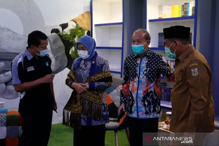 Menteri Ketenagakerjaan Ida Fauziyah (dua kiri) berbincang dengan Ketua Forum Koordinasi Jejaring Pemagangan (FKJP) Aceh Jamaluddin (kiri), Bupati Aceh Tamiang Mursil (dua kanan) dan Wakil Wali Kota Banda Aceh Zainal Arifin (Kanan) saat kunjungan kerja di Balai Latihan Kerja (BLK), Banda Aceh, Aceh, Senin (11/1/2021). Menteri Ketenagakerjaan berharap Pemerintah Daerah memanfaatkan BLK sebagai tempat meningkatkan kemampuan tenaga kerja serta sumber daya manusia untuk meminimakan angka pengangguran. Antara Aceh/Irwansyah Putra.