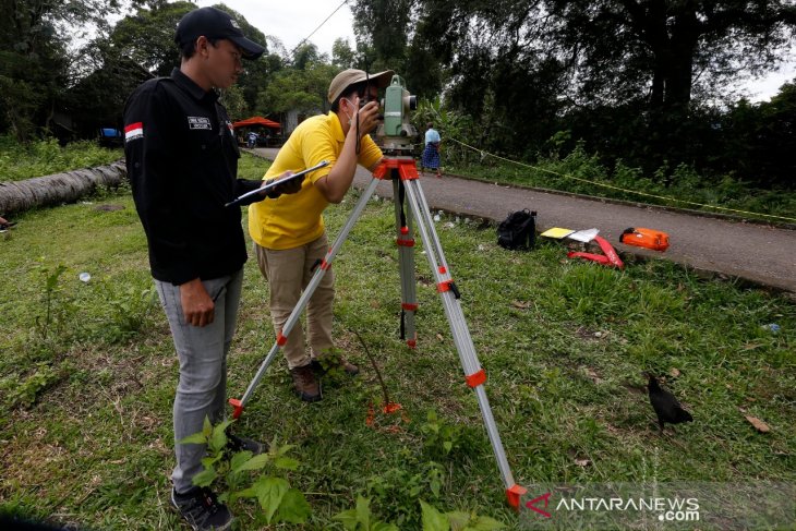 Tim survei Prodi Teknik Geologi Universitas Syiah Kuala didampingi aparatur gampong melakukan pengukuran di kawasan bencana tanah bergerak di Desa Lamkleng, Aceh Besar, Aceh, Minggu (17/1/21). Berdasarkan hasil tim survei prodi teknik geologi Universitas Syiah Kuala sejak hari pertama hingga hari keempat telah terjadi peningkatan penurunan tanah dari 20 centimeter menjadi 1.68 meter. Antara Aceh/Irwansyah Putra