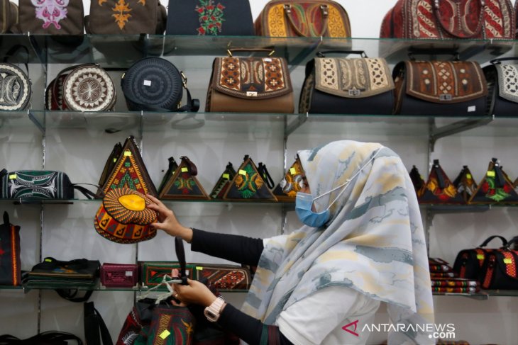 Pengrajin menyiapkan hasil produksi kerajinan Usaha Mikro, Kecil dan Menengah (UMKM) rumah tangga dan Industri Kecil Menengah (IKM) untuk dipasarkan di bazar UMK-IKM dan pasar murah Asia Mart Center, Banda Aceh, Aceh, Selasa (19/1/2021). Pemasaran secara mandiri, media sosial dan keterlibatan pihak swasta dengan menggelar bazar atau pasar murah diharapkan dapat membangkitkan kembali perekonomian ditengah pandemi COVID-19. Antara Aceh/Irwansyah Putra.
