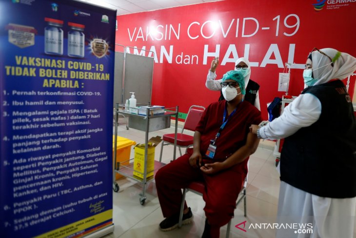 Aktivitas vaksinasi COVID-19 Sinovac untuk tenaga kesehatan di Rumah Sakit Umum Zainal Abidin (RSUZA), Banda Aceh, Aceh, Rabu (27/1/2021). Menteri Kesehatan Budi Gunadi Sadikin menyebutkan terdapat 15 persen dari 1,48 juta tenaga kesehatan tahap pertama belum dapat diberikan vaksinasi COVID-19 karena terkendala tekanan darah tinggi dan memiliki penyakit penyerta (komorbid). Antara Aceh/Irwansyah Putra