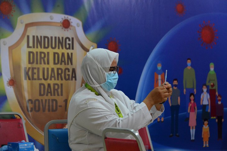 VAKSINASI COVID-19 SINOVAC TAHAN DUA. Petugas bersiap menyuntikan vaksin COVID-19 Sinovac kepada tenaga kesehatan di Rumah Sakit Umum Zainal Abidin, Banda Aceh, Aceh, Selasa (16/2/2021). Hasil pemantauan tim pemerintah Aceh di sejumlah rumah sakit kabupaten/kota di daerah itu, tenaga kesehatan antusias mengikuti vaksinasi dan diharapkan target vaksinasi tahap ke dua pada 28 Februari tercapai serta berjalan sukses dalam upaya mencegah penyebaran COVID-19. Antara Aceh/Ampelsa.