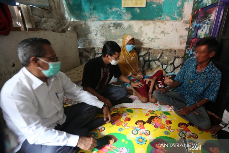 Ketua DPRK Banda Aceh Farid Nyak Umar (dua kiri) dan Kadis Kesehatan Kota Banda Aceh Lukman (kiri) melihat kelainan tulang punggung Muhammad Zikra (11) di Gampong Peuniti, Kecamatan Baiturrahman, Banda Aceh, Rabu (31/3/2021). Muhammad Zikra telah ditangani Dinas Kesehatan untuk mendapat perawatan lanjutan. Antara Aceh/Irwansyah Putra.