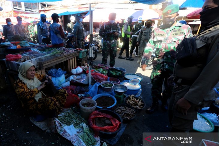 Tim Satuan Tugas COVID-19 Banda Aceh yang terdiri dari personil Polresta, anggota TNI dan Satpol PP melaksanakan sosialisasi dan razia protokol kesehatan (prokes) kepada pedagang kaki lima di pasar tradisional Peunayong, Banda Aceh, Aceh, Kamis (22/4/2021). Pemerintah Aceh akan mengefektifkan Pemberlakukan Pembatasan Kegiatan Masyarakat (PPKM) skala mikro di seluruh daerah guna mencegah penyebaran dan penanganan COVID-19. Antara Aceh/Irwansyah Putra.