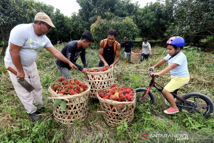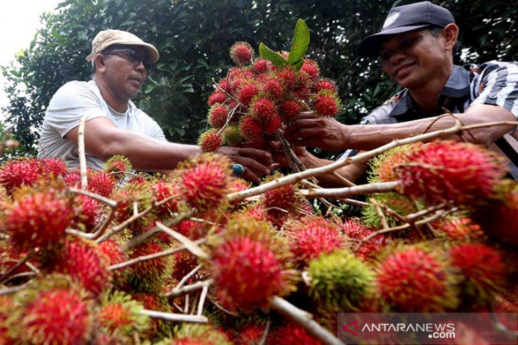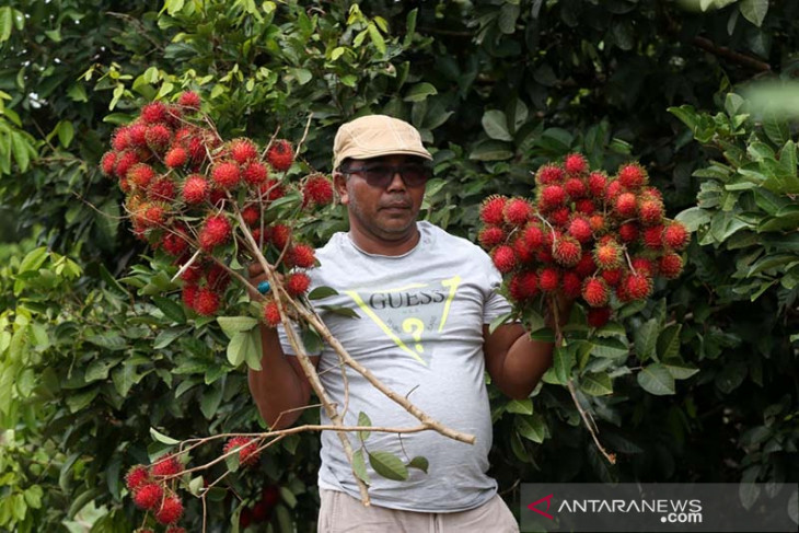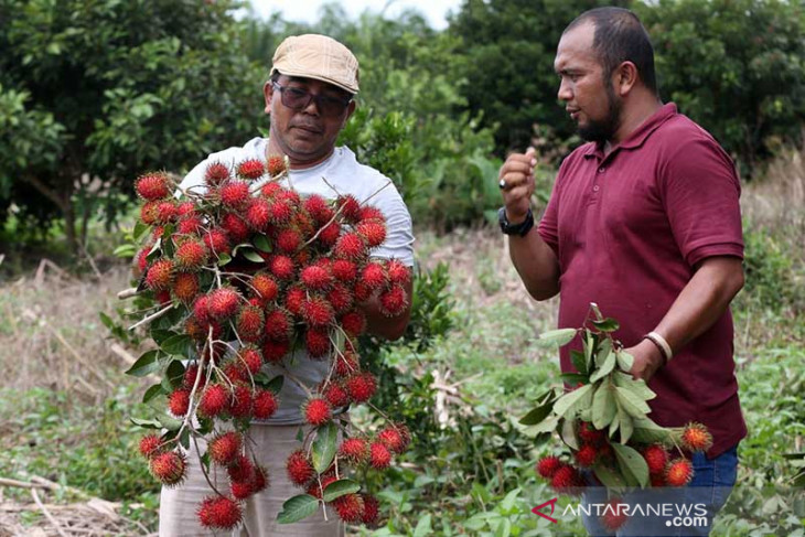 Panen Rambutan Lahan Gambut. Mantan kombatan Gerakan Aceh Merdeka (GAM) Tgk Abrar Muda memanen rambutan yang dikembangkannya di kawasan lahan gambut, Gampong Cot Bayu, Kecamatan Trumon, Kabupaten Aceh Selatan, Sabtu (7/8/2021). ANTARA/Irwansyah Putra
