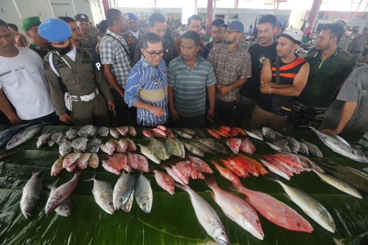 Pj Wali Kota Banda Aceh Bakri Siddiq Meninjau pasar Al Mahirah Lamdingin di Banda Aceh, Kamis (21/7/2022). Pada kunjungannya itu Pj Walikota Banda Aceh menerima berbahai masukan dari pedagang pasar tradisional.
