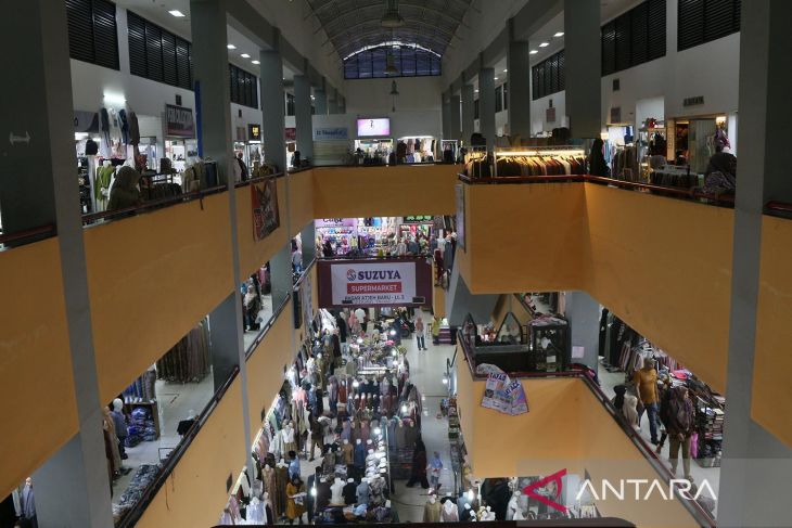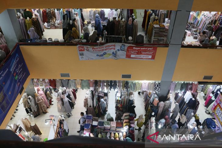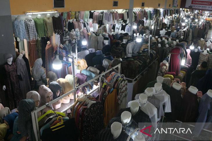Sejumlah pengunjung memilih berbagai jenis busana di pusat perbelanjaan Pasar Aceh, Banda Aceh, Aceh, Kamis (13/4/2023). Sejumlah pedagang menyatakan aktivitas pusat perbebelanjaan saat ini masih sepi pengunjung dan diprediksi pengunjung mulai ramai berbelanja kebutuhan lebaran pada H-5 Idul Fitri 1444 Hijriyah. ANTARA FOTO/Ampelsa.