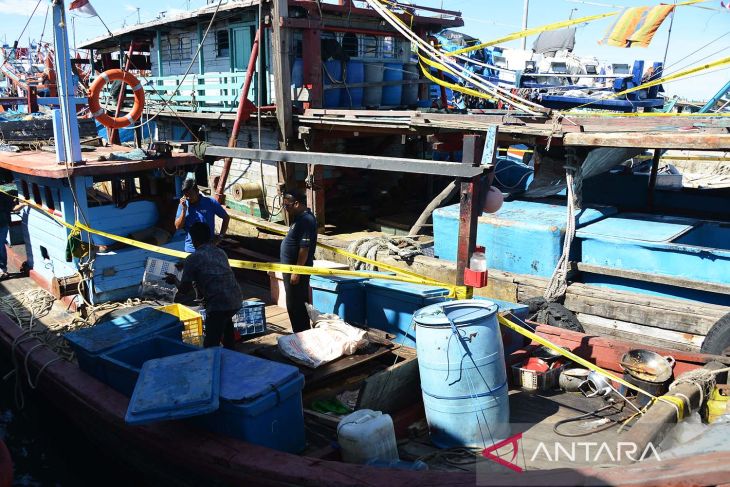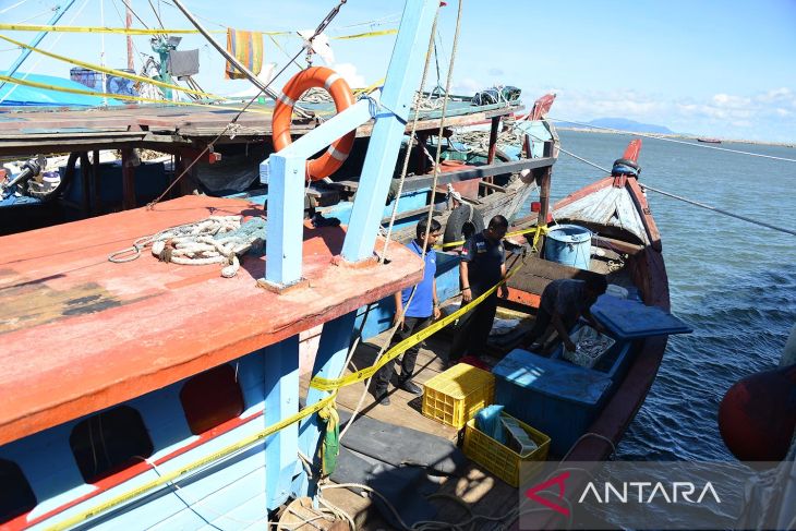 Petugas memeriksa hasil tangkapan ikan kapal trawl usai penangkapan di Pelabuhan Perikanan Samudera (PPS) Banda Acerh, Aceh, Sabtu (27/5/2023). Pangkalan Pengawasan Sumber Daya Kelautan dan Perikanan (PSDKP) menangkap dua unit kapal ikan Indonesia, KM Surya Citra dan KM Laot Jaya di perarian Langsa dan Lhokseumawe, provinsi Aceh karena menggunakan trawl , tanpa dilengkapi dokumen dan mengamankan sebanyak 15 ABK . ANTARA FOTO/Ampelsa.