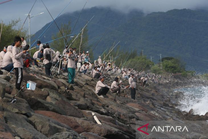 Warga mengikuti lomba memancing Banda Aceh 2025 (Banda Aceh Fishing Tournament 2025) di pesisir pantai Kilometer Nol Banda Aceh, Aceh, Minggu (12/10/2025). Banda Aceh Fishing Tournament 2025 yang digelar Pemerintah Kota Banda Aceh bersama komunitas Tim Rencana Besar (TRB) Fishing Aceh diikuti 1.000 peserta dari 15 Kabupaten dan kota dengan tujuan mempromosikan lokasi wisata memancing kota Banda Aceh, memperkenalkan kekayaan laut dan keindahan pantai di ujung barat pulau Sumatera. Antara Aceh/Irwansyah Putra.
